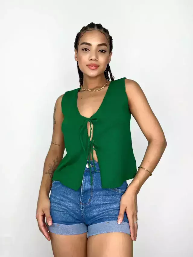 Blusa Feminina Regata Modal Amarração Frontal Samila Ref. 1324