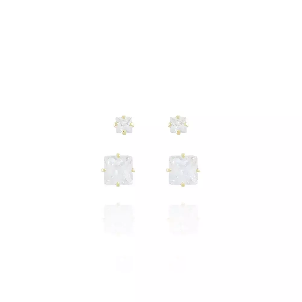Este lindo brinco DUPLO QUADRADO CRISTAL é feito com LATÃO BANHADO A OURO 18K de alta qualidade. Com design único e elegante