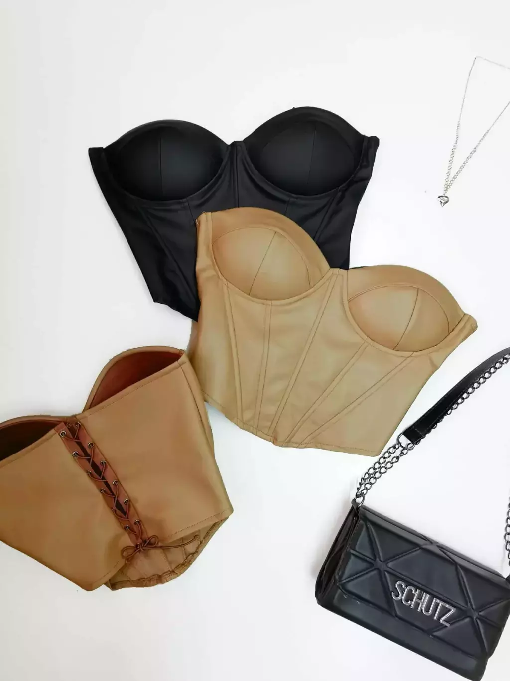 Cropped Feminino em Courino Corset sem Alça Yasmin Ref. 699