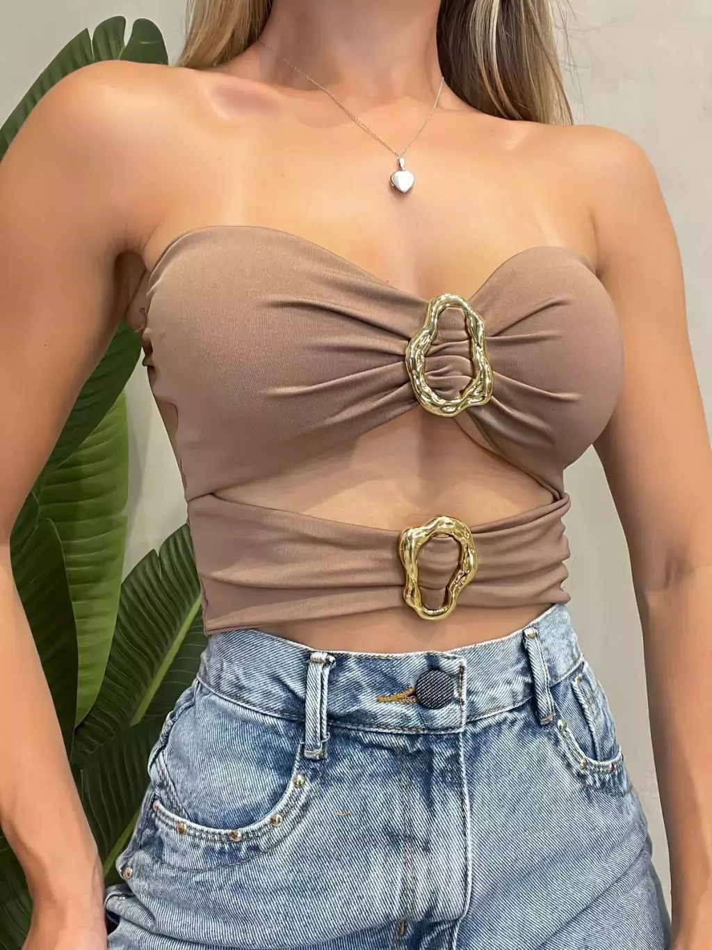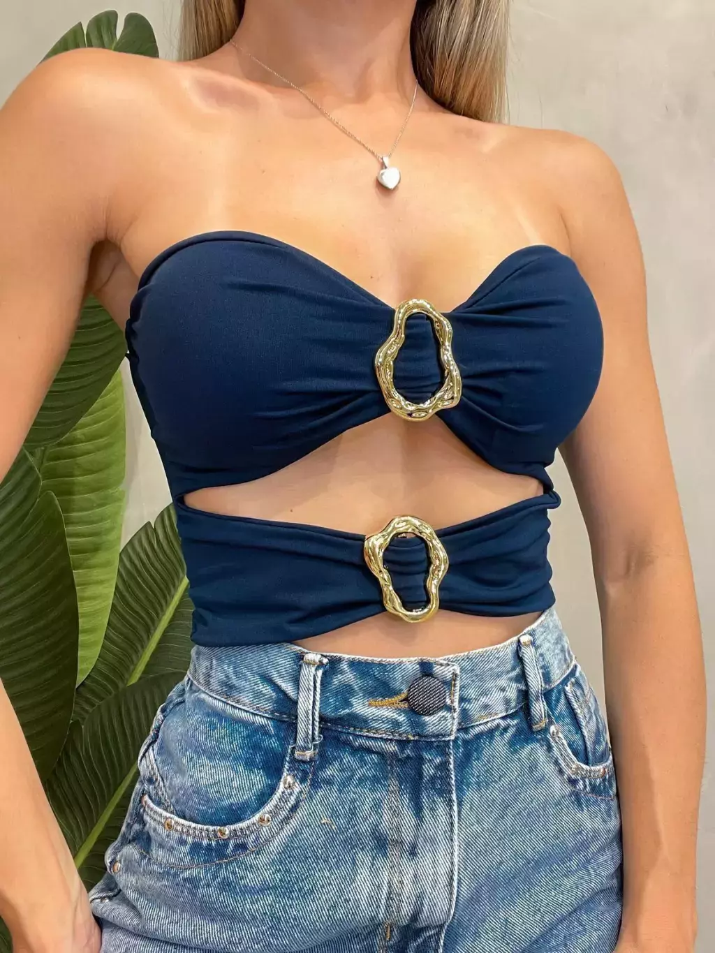 Cropped Feminino em Suplex sem Alça com Recortes e Fivelas Daiana Ref. 1406