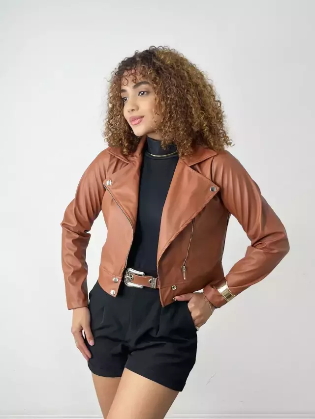 Jaqueta Feminina Biker em Courino com Botões Karina Ref. 1506