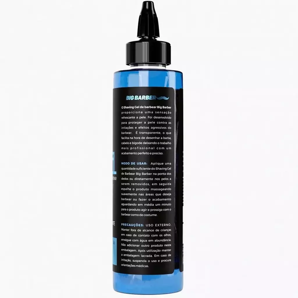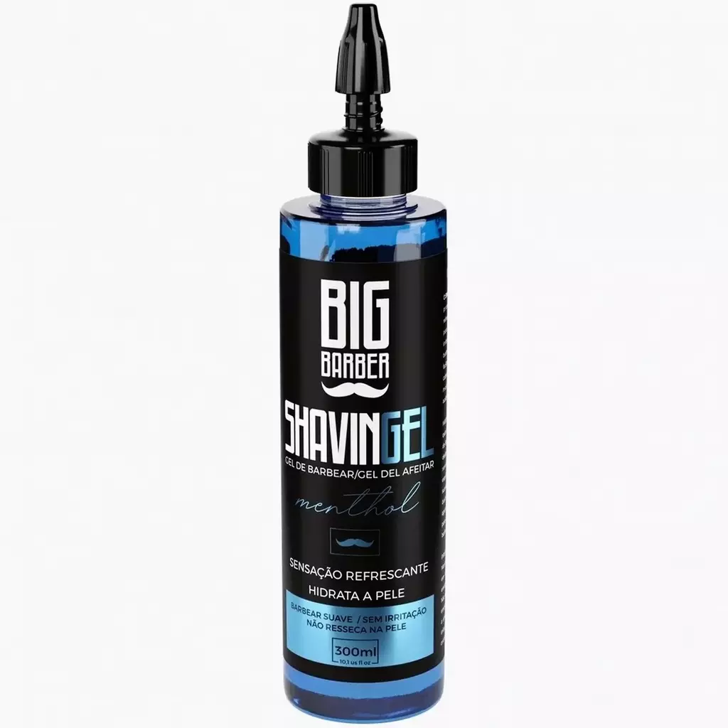 O shaving gel de barbear em Bisnaga BIG BARBER Menthol profissional 300ml proporciona uma sensação refrescante a pele. Foi desenvolvido para dar praticidade ao profissional e proteger a pele do cliente contra as irritações e efeitos agressivos do barbear.