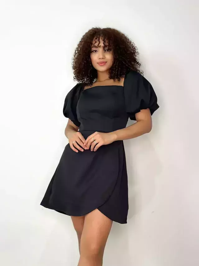 Vestido Feminino Curto em Alfaiataria Manga Princesa Transpassado Lorena Ref. 1341