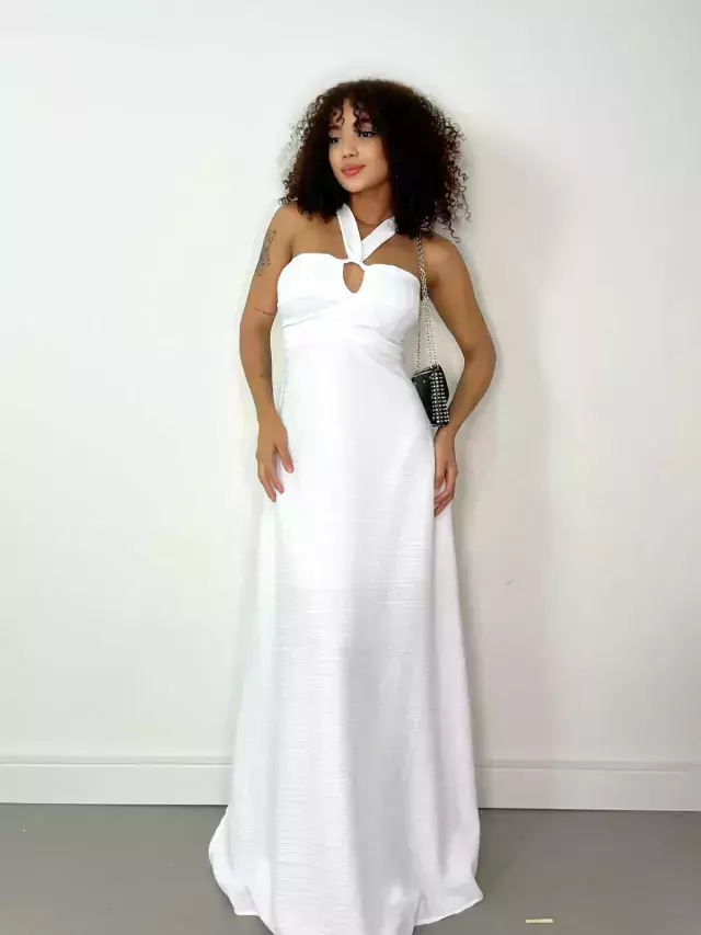Vestido Feminino Longo em Duna com Amarração Kimberly Ref. 1340