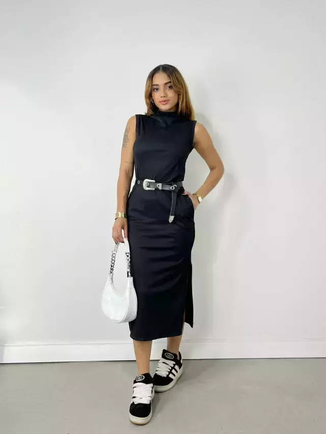 Vestido Feminino Midi em Ribana Regata Gola Falsa Roberta Ref. 1499